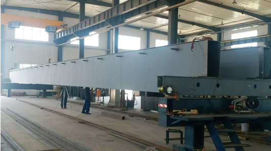 ○ 即在預(yù)組裝專用橋架上進(jìn)行預(yù)拼裝,并用激光測距儀、水準(zhǔn)儀、全站儀等光學(xué)測量儀檢測,確保主梁拱度、旁彎,以 及車輪定位、對角線等正確的跨距和定位;